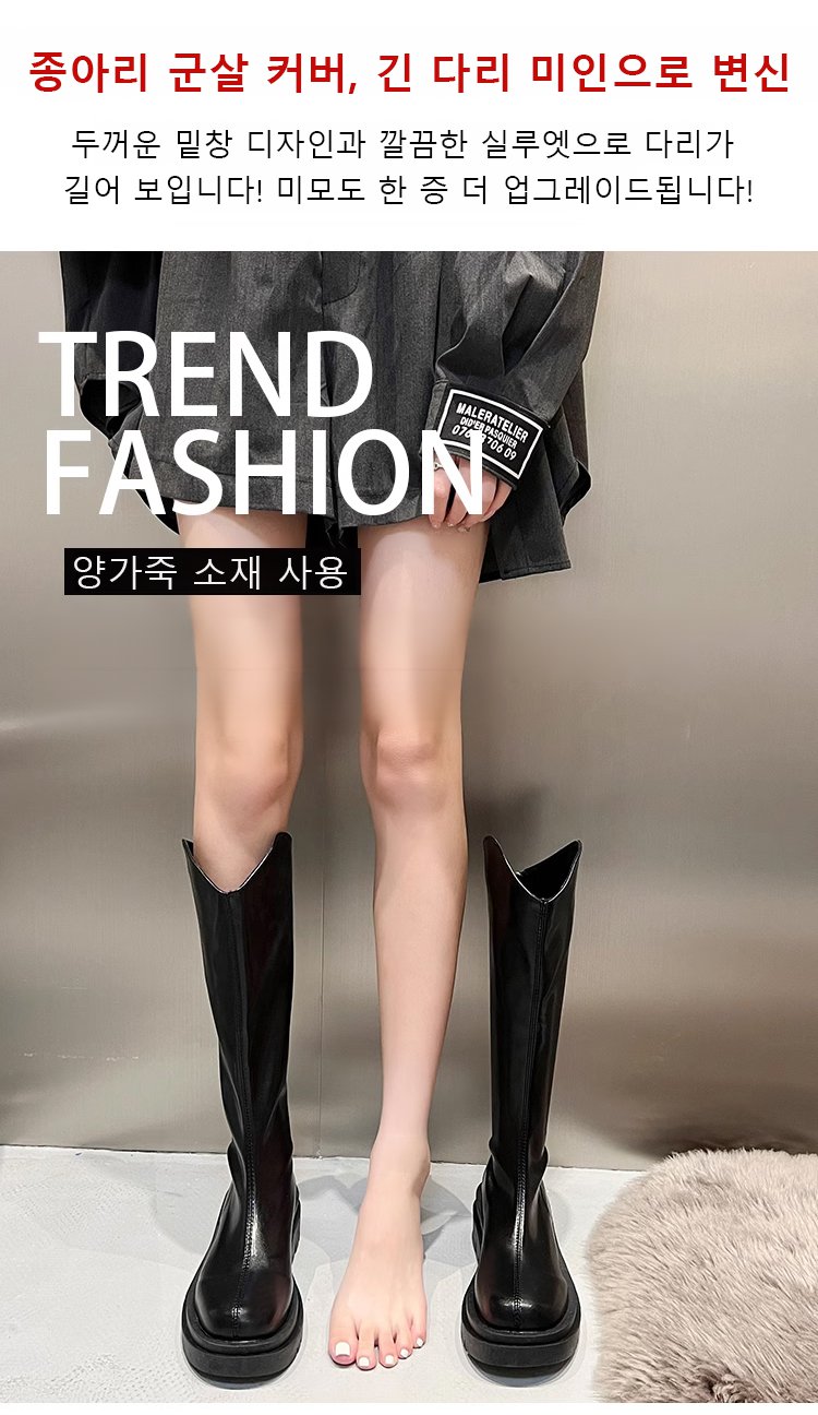 브이컷 플랫폼 슬림핏 양가죽 라이더 부츠