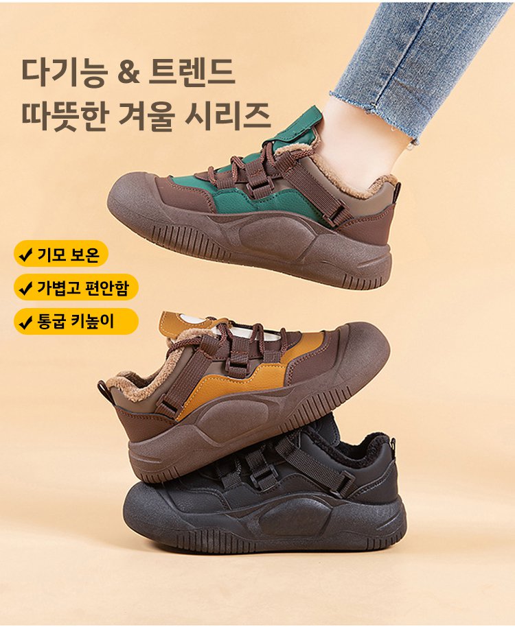 여성용 대인기 통굽 캐주얼 기모 스니커즈