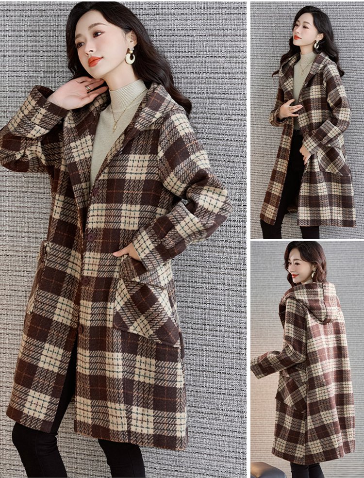 [날씬해 보임] 캐주얼 체크무늬 여성용 모직 코트