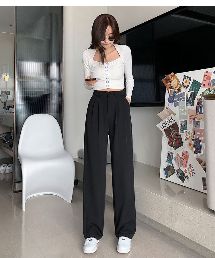 하이웨이스트 드레이프 일자핏 와이드 팬츠